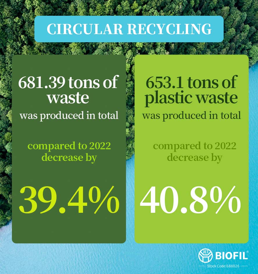 JET Biofil remains focused on enhancing its recycling and reuse efforts for plastic waste, achieving a total of 14.76 tons of recycled and reused plastic waste over 2022-2023.